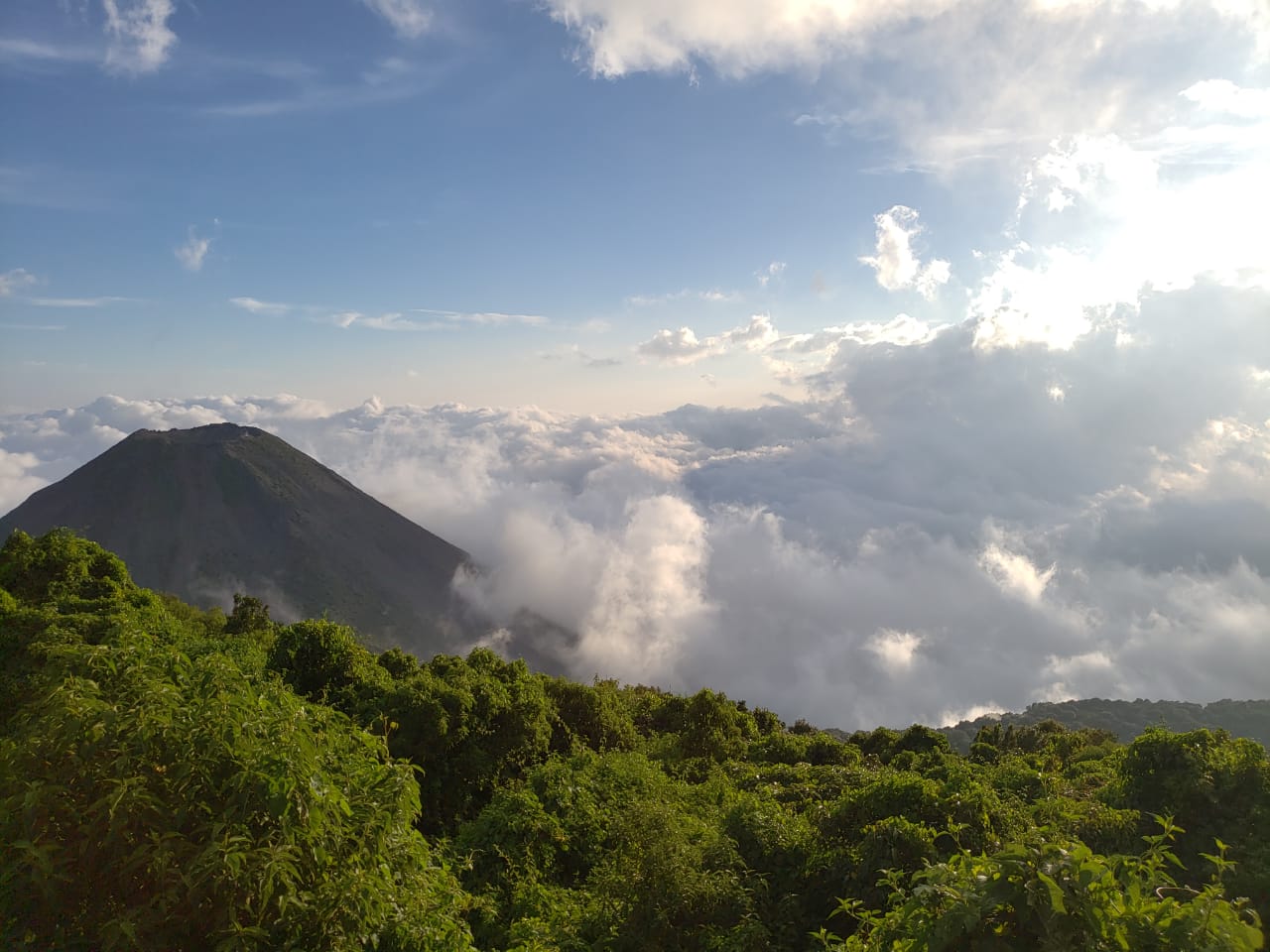 El segundo es el Volcán Lamatepec o de Santa Ana, el más alto de El Salvador. Imponente y misterioso se encuentra justo al lado del otro volcán apagado, el Volcán Cuntetepeque, hoy conocido como Cerro Verde. Es en sus senderos frescos y cubiertos de neblina donde uno siente que, estirando el brazo, se puede tocar el cráter del Izalco con la mano. Desde aquí se respira naturaleza pura, se camina entre orquídeas y aves, y se alcanzan vistas inolvidables de los otros dos volcanes que, dicho sea de paso, se pueden también escalar.