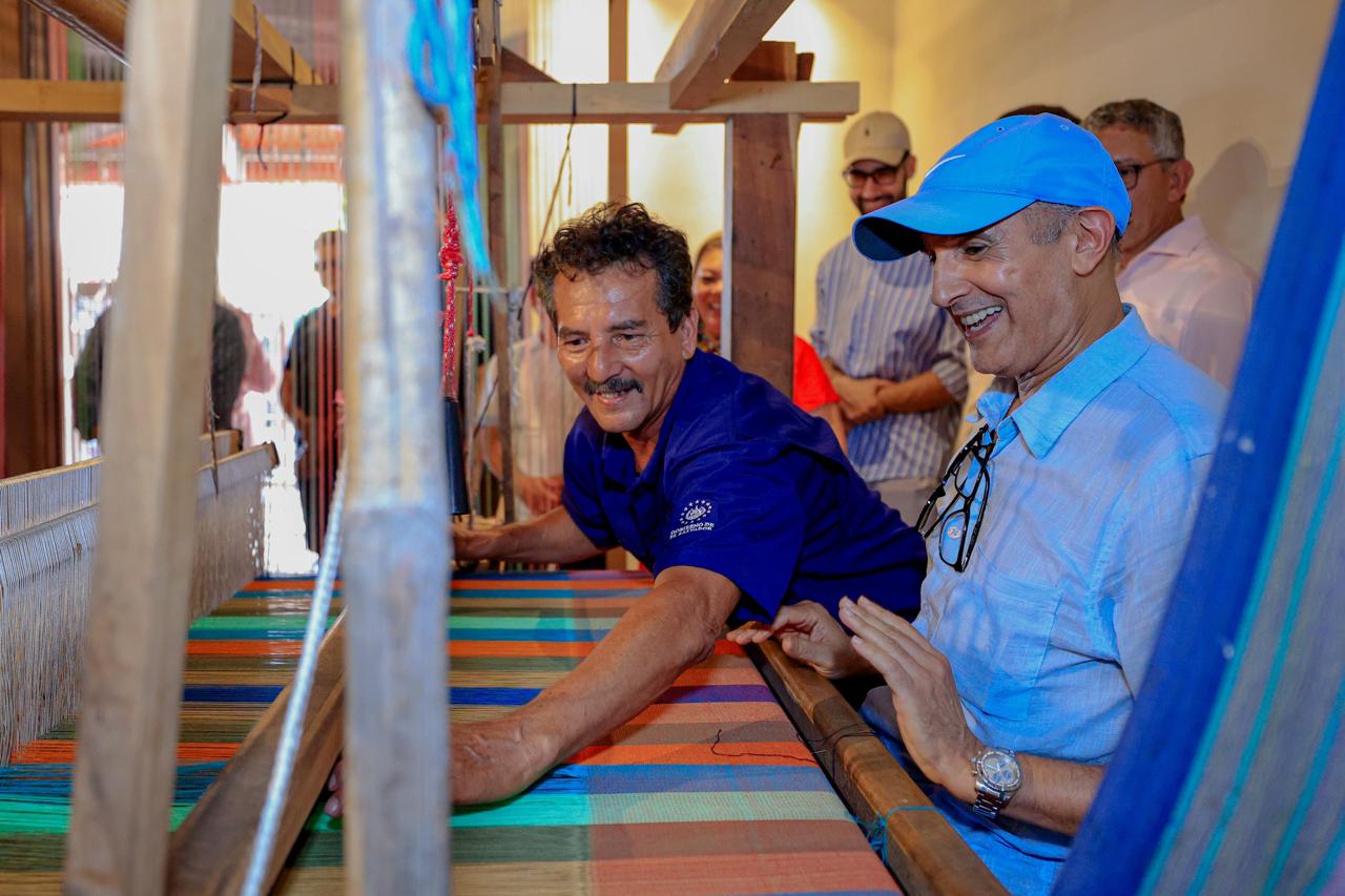 Auténticos artistas, mientras confeccionan telas de algodón o sedalina, parecen hacer música con cada movimiento. Sus brazos se coordinan con precisión: uno tira la lanzadera de un lado a otro, el otro baja el peine, y al mismo tiempo, sus pies accionan las palancas del telar. El resultado es un ritmo constante, casi hipnótico, que acompaña la creación de cada diseño sobre la tela.